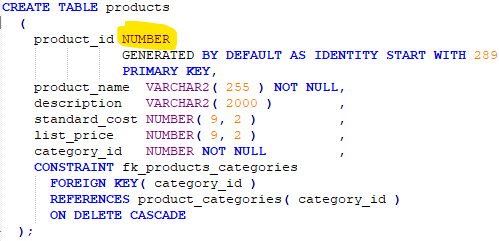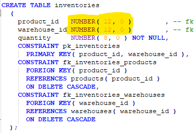 Außerdem werden Fremdschlüsselfelder, die auf die NUMBER PKs verweisen, weiter eingeschränkt wie z.B. mit NUMBER(12,0).