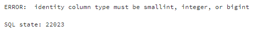 Primary Key Columns dürfen in PostgreSQL also nur als ganzzahlige Datentypen SMALLINT, INTEGER oder BIGINT definiert werden.
